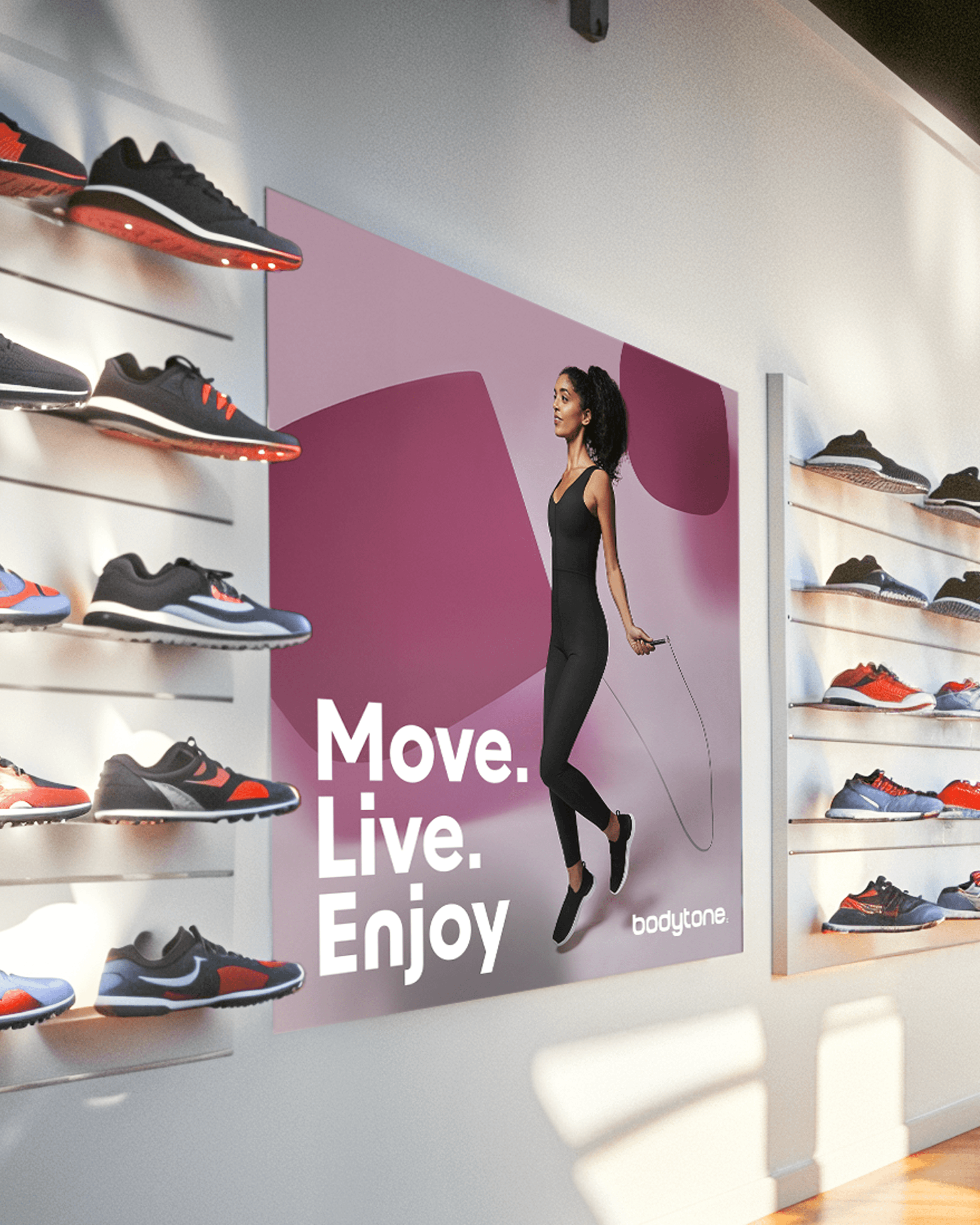 The fitness world is no longer reserved for elite athletes or big gyms. Today, moving, taking care of yourself, and feeling good is part of everyday life for many people. Bodytone couldn’t stay behind. After more than 20 years in the industry, it was time to update its identity—not only to remain a trusted name among professionals, but to reach further and inspire anyone who wants to train at home. The goal was to preserve its professional essence while adding new values—trust, optimism, accessibility—that would connect with people who are just starting out, getting back into it, or simply want to train their own way. A more open, more human, friendlier, and more diverse image.